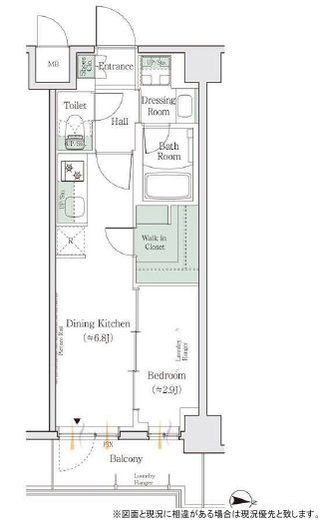 | 入居日 | 2026年4月下旬 | 間取り | 1DK +WIC | 面積 | 27.52m2 | 階数 | 4/8階 |