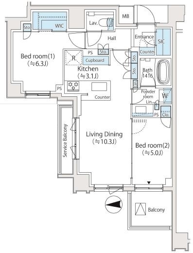 | 入居日 | 2026年6月上旬 | 間取り | 2LDK +WIC +SIC | 面積 | 59.59m2 | 階数 | 4/5階 |
