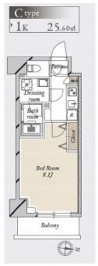 | 入居日 | 2026年3月中旬 | 間取り | 1K | 面積 | 25.6m2 | 階数 | 5/8階 |