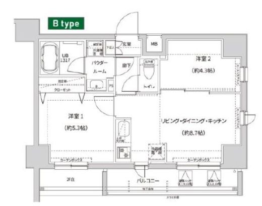 | 部屋2 | 洋室 5.3帖 |