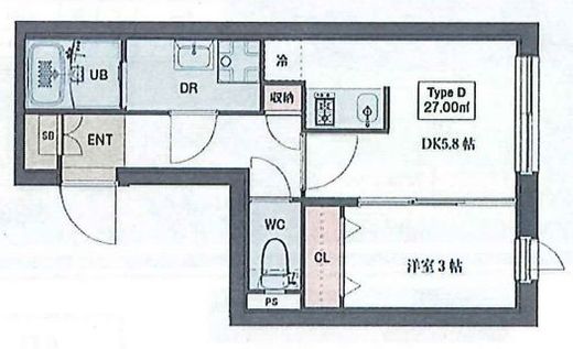| 入居日 | 2026年1月下旬 | 間取り | 1DK | 面積 | 27m2 | 階数 | 3/4階 |