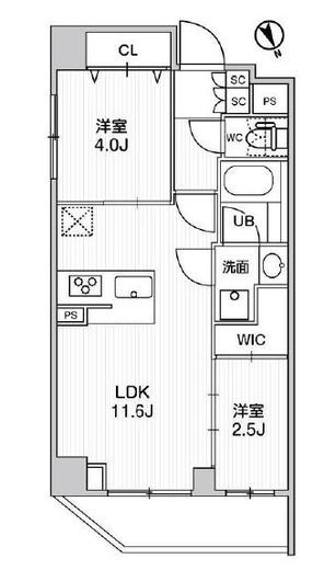 | 入居日 | 2026年1月下旬 | 間取り | 2LDK +WIC | 面積 | 43.26m2 | 階数 | 4/8階 |