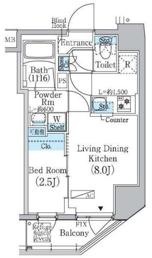| 入居日 | 2026年6月上旬 | 間取り | 1LDK | 面積 | 25.25m2 | 階数 | 4/13階 |