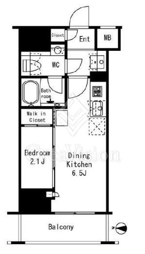 | 入居日 | 2026年4月下旬 | 間取り | 1DK +WIC | 面積 | 25.21m2 | 階数 | 10/13階 |