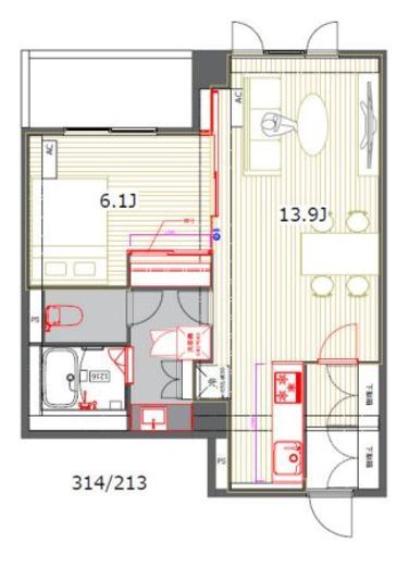 | 入居日 | 2026年2月中旬 | 間取り | 1LDK | 面積 | 49.75m2 | 階数 | 2/6階 |