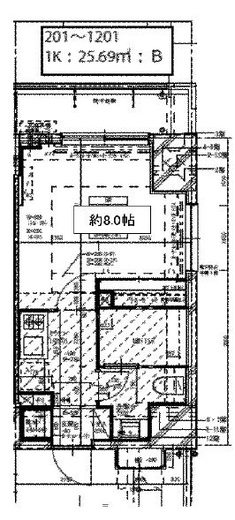 | 入居日 | 2026年6月上旬 | 間取り | 1K | 面積 | 25.69m2 | 階数 | 5/12階 |