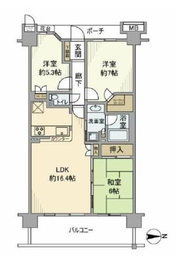| 部屋1 | LDK 16.4帖 |