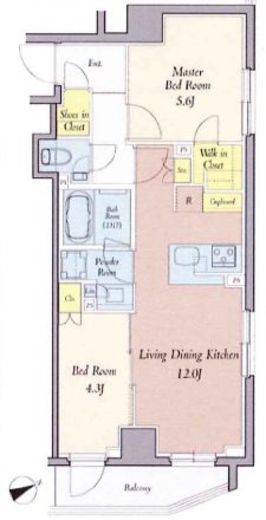 | 入居日 | 2026年5月中旬 | 間取り | 2LDK +WIC +SIC | 面積 | 50.45m2 | 階数 | 4/7階 |