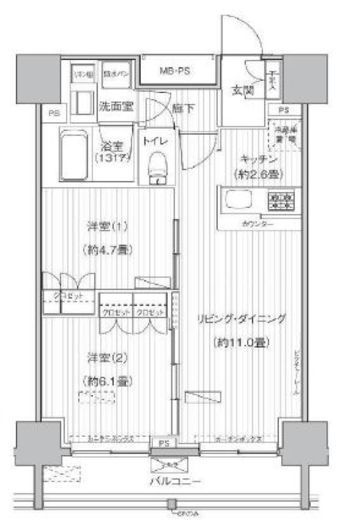 | 間取り | 2LDK | 築年数 | 2012年3月 (築14年) |