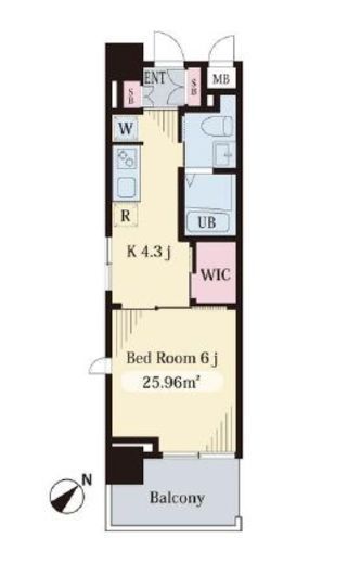 | 入居日 | 2026年5月中旬 | 間取り | 1K +WIC | 面積 | 25.96m2 | 階数 | 3/11階 |