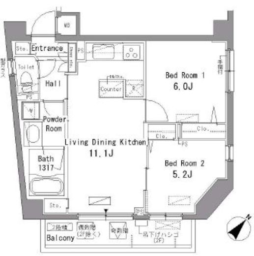 | 間取り | 2LDK | 築年数 | 2008年10月 (築18年) |