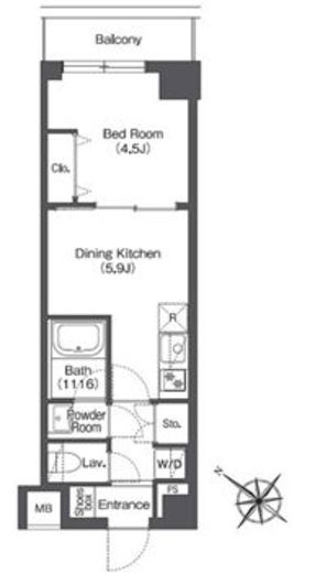 | 間取り | 1DK | 築年数 | 2021年3月 (築5年) |