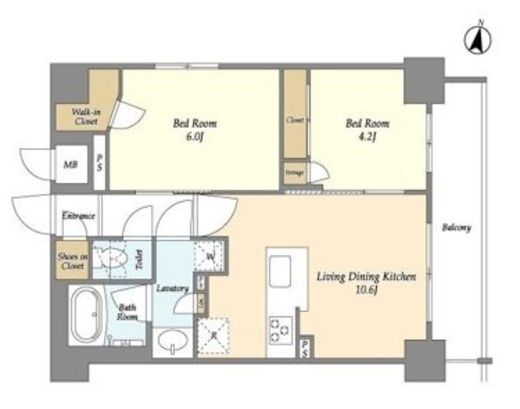 | 間取り | 2LDK | 築年数 | 2022年6月 (築4年) |