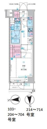 | 入居日 | 2026年5月中旬 | 間取り | 1K +WIC | 面積 | 25.95m2 | 階数 | 6/7階 |
