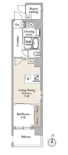 | 入居日 | 即時 | 間取り | 1LDK | 面積 | 35.03m2 | 階数 | 3/8階 |