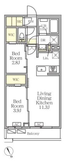 | 入居日 | 2026年5月下旬 | 間取り | 2LDK +WIC +SIC | 面積 | 42.32m2 | 階数 | 1/5階 |