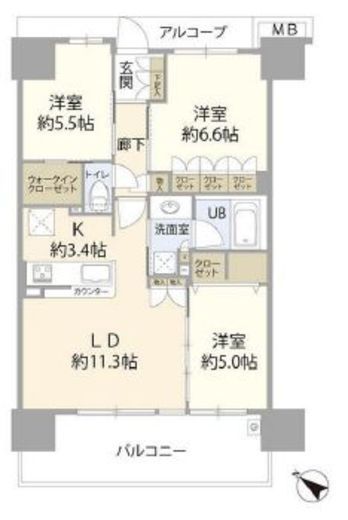 | 間取り | 3LDK | 築年数 | 2014年3月 (築12年) |