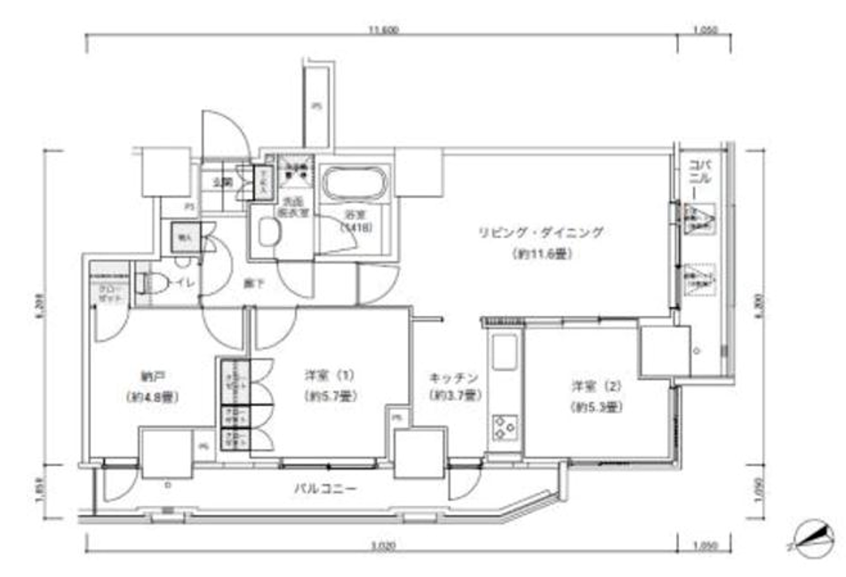 部屋1 | LDK 15.3帖 |