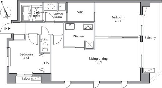 | 入居日 | 2026年4月下旬 | 間取り | 2LDK +WIC | 面積 | 60.74m2 | 階数 | 1/7階 |