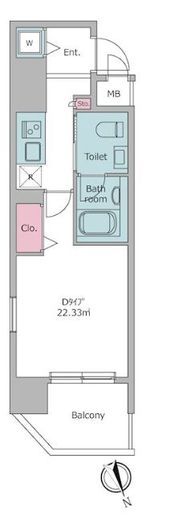 | 入居日 | 2026年2月上旬 | 間取り | 1K | 面積 | 22.33m2 | 階数 | 6/14階 |