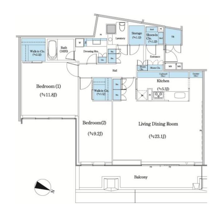 入居日 | 2025年12月中旬 | 間取り | 2LDK +WIC +SIC +TR | 面積 | 118.58m2 | 階数 | 10/13階 |