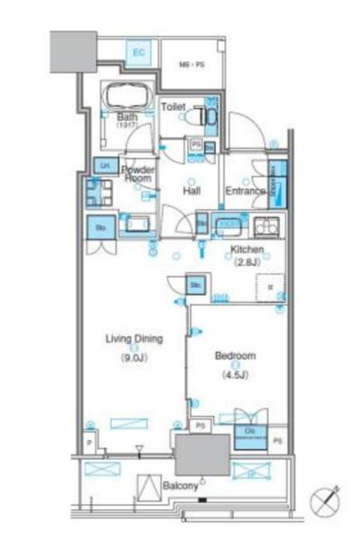 | 入居日 | 2025年12月上旬 | 間取り | 1LDK | 面積 | 46.25m2 | 階数 | 2/19階 |