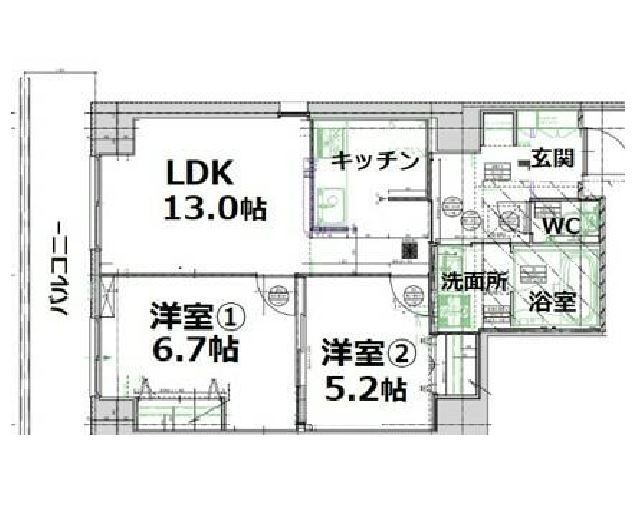 | 部屋2 | 洋室 6.7帖 |