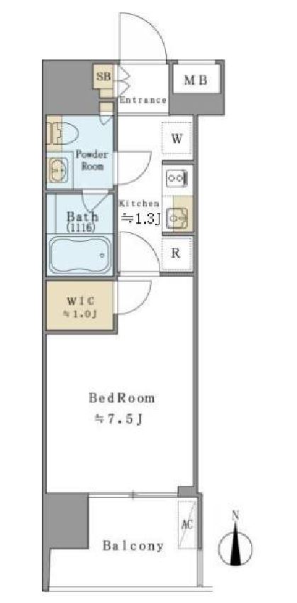| 入居日 | 2026年1月下旬 | 間取り | 1K +WIC | 面積 | 26.16m2 | 階数 | 5/13階 |