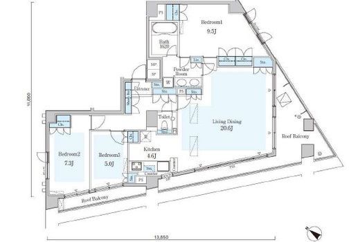 | 入居日 | 2026年2月上旬 | 間取り | 3LDK | 面積 | 105.11m2 | 階数 | 14/14階 |