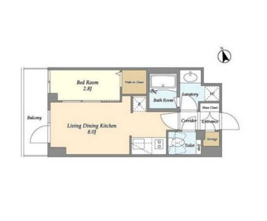 | 入居日 | 2026年2月上旬 | 間取り | 1LDK +WIC | 面積 | 28.77m2 | 階数 | 3/6階 |