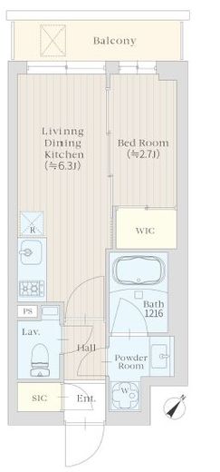 | 入居日 | 2026年2月下旬 | 間取り | 1DK +WIC +SIC | 面積 | 25.06m2 | 階数 | 4/4階 |