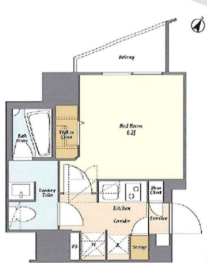 | 間取り | 1K | 築年数 | 2022年6月 (築4年) |