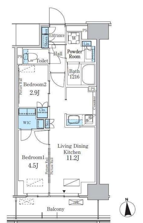 | 入居日 | 2025年11月下旬 | 間取り | 2LDK +WIC | 面積 | 44.54m2 | 階数 | 5/7階 |