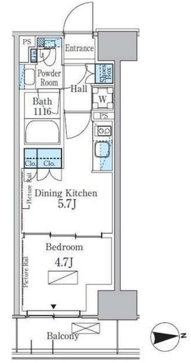 | 入居日 | 2026年2月上旬 | 間取り | 1DK | 面積 | 26.97m2 | 階数 | 2/7階 |