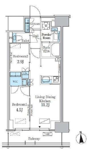 | 入居日 | 2026年5月上旬 | 間取り | 2LDK +WIC | 面積 | 44.54m2 | 階数 | 4/7階 |