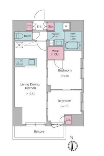 | 入居日 | 2026年5月上旬 | 間取り | 2LDK +WIC | 面積 | 53.55m2 | 階数 | 2/13階 |