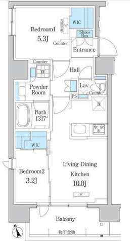 | 入居日 | 2026年1月下旬 | 間取り | 2LDK +WIC | 面積 | 48m2 | 階数 | 13/13階 |